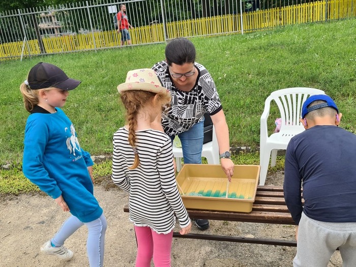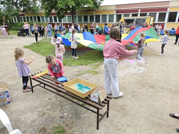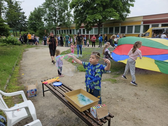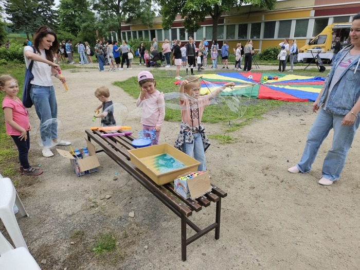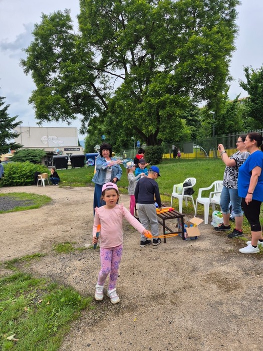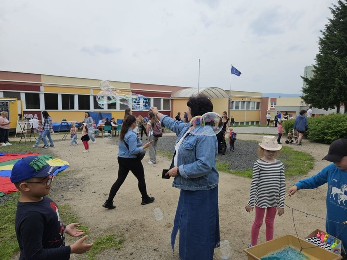 Ve školce se děti radovaly z roztančeného dne, který byl plný smíchu a radosti. Největším hitem byla bublinová show, která děti naprosto uchvátila. Barevné bubliny létaly všude kolem a děti se snažily chytit co nejvíce z nich. Bylo to jako kouzelný sen!