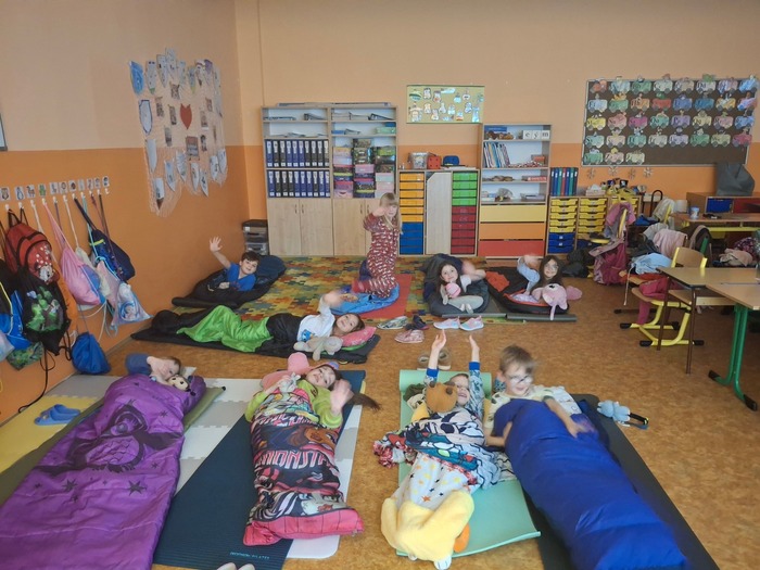 Naši nejmladší školáčci se pustili do dobrodružství, na které budou ještě dlouho vzpomínat. Poprvé v životě je čekala přespávačka ve škole. Děti v podvečer 6.2.2026 dorazily vybavené spacáky, plyšáky a samozřejmě i s dobrou náladou.